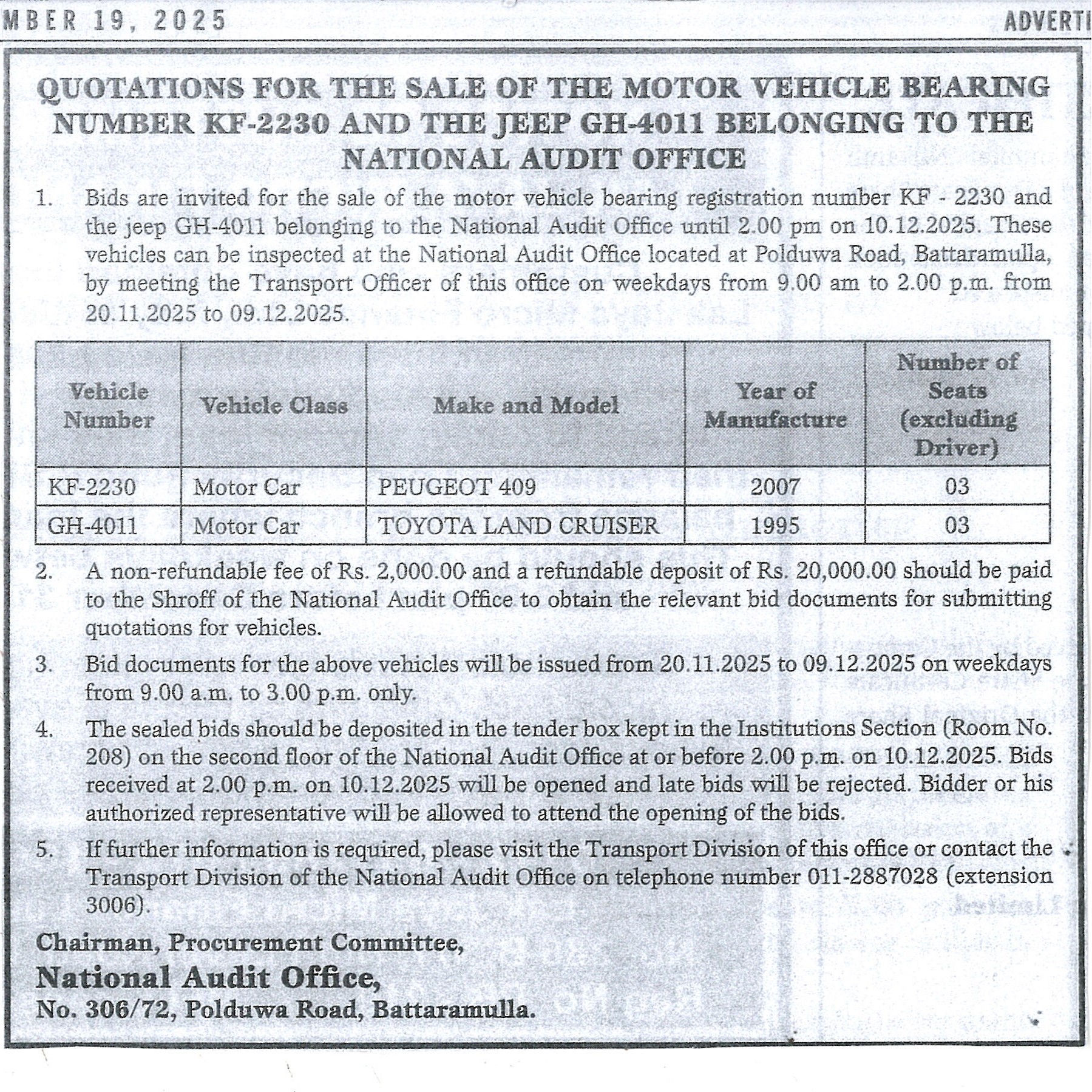 QUOTATION FOR THE SALE OF THE MOTOR VEHCAL –NATIONAL AUDIT OFFICE