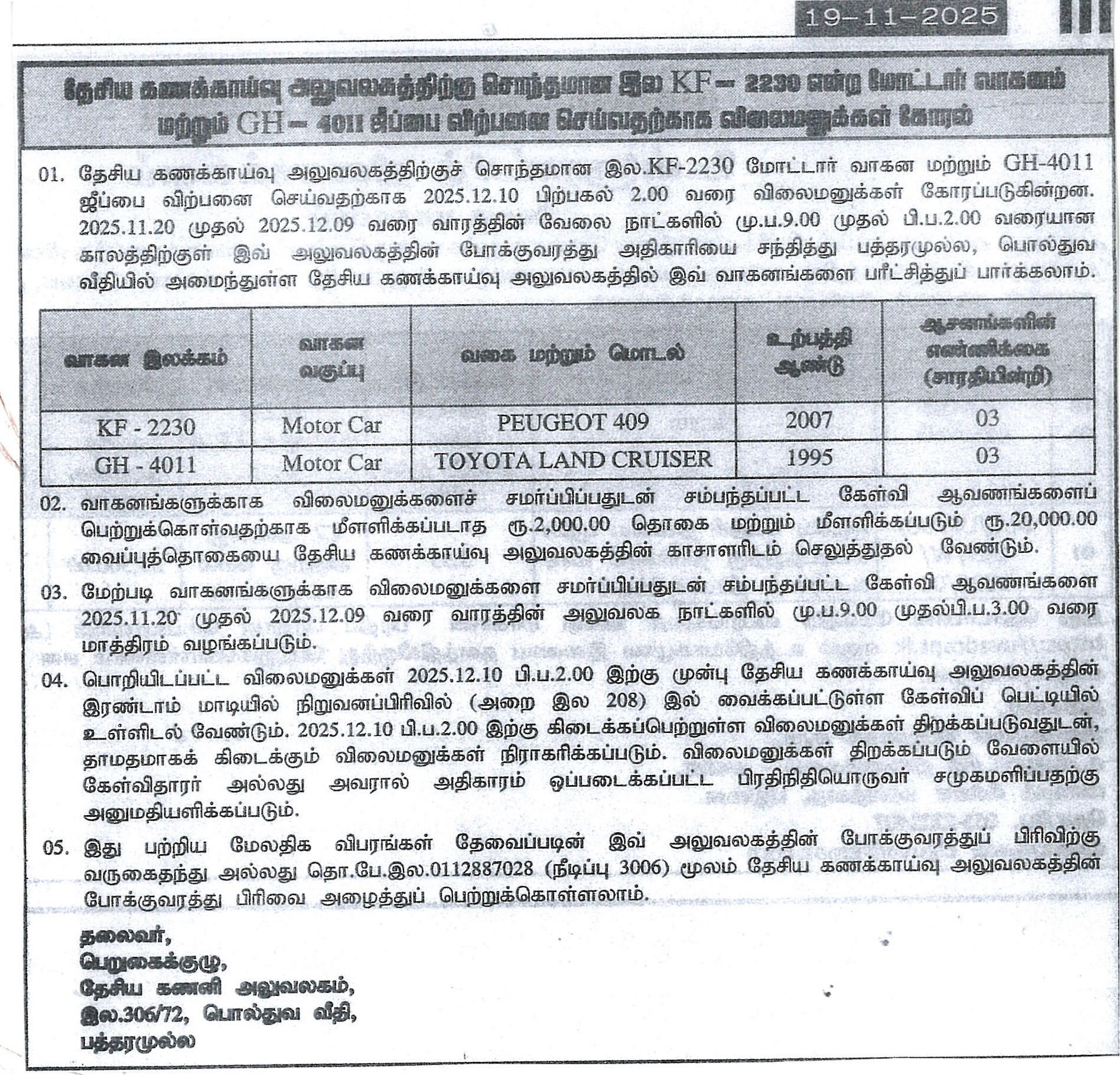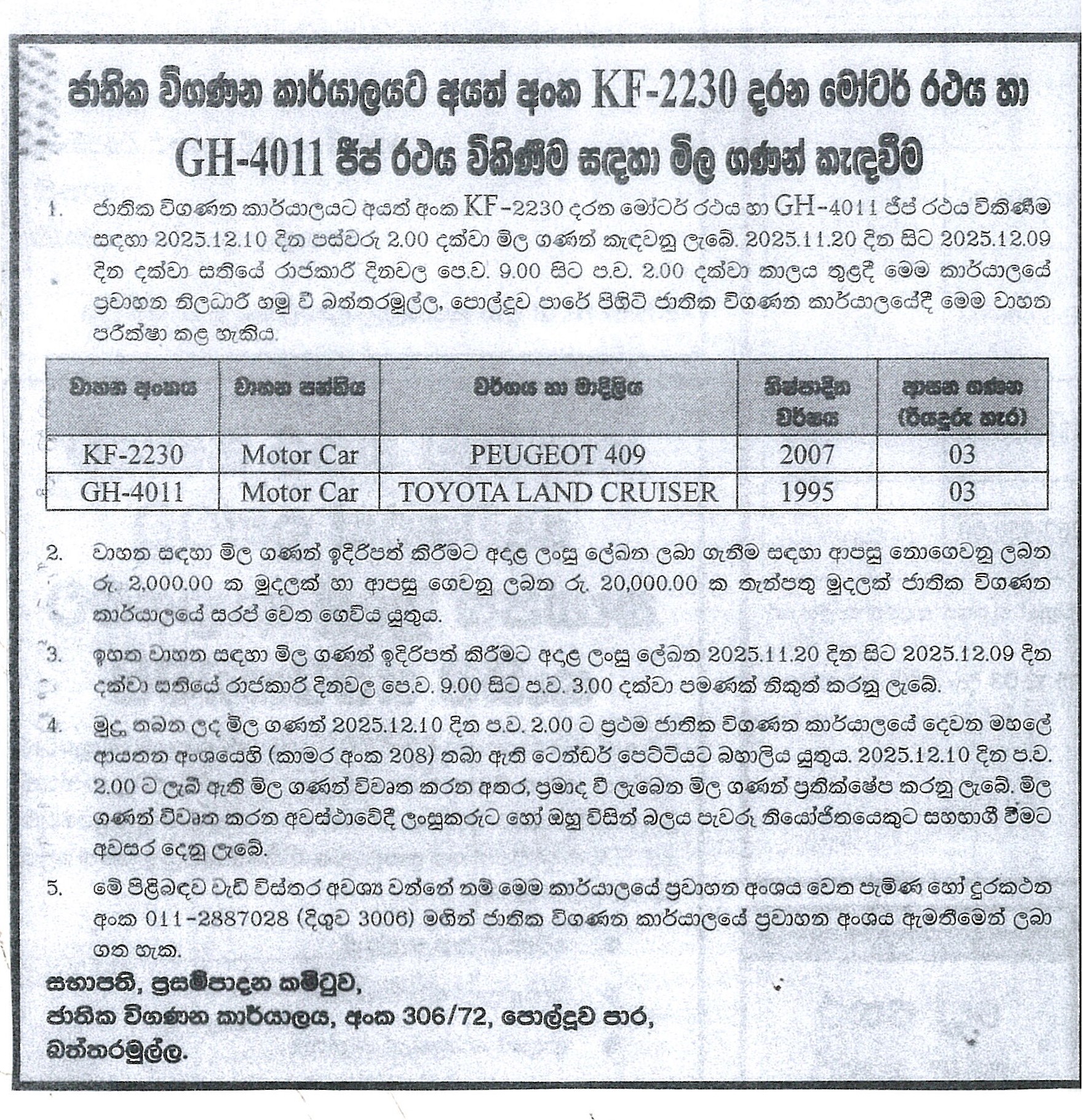 QUOTATION FOR THE SALE OF THE MOTOR VEHCAL –NATIONAL AUDIT OFFICE